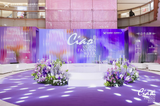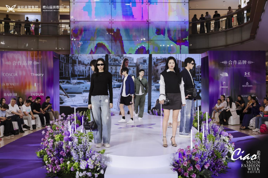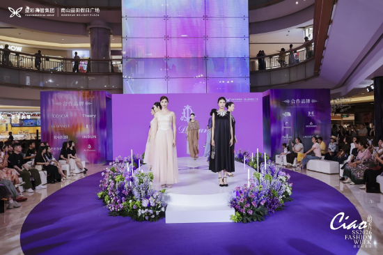 户外的浪漫氛围层层递进,场内的时尚张力则迎来了集中爆发。4月18日,“Ciao・敢秀”2026春夏时装周在B2层中庭登场。大秀集结COSCIA、Theory、L.K.Bennett、ERDOS、The North Face等14个知名品牌,分三个篇章精准切中深圳人多元且挑剔的审美。