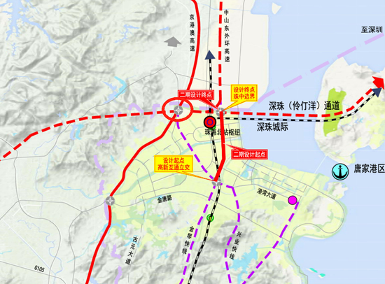 深珠城际始于深圳前海站,于珠海市高新区后环片区设站,与珠斗城际、深惠城际贯通,线路全长约40公里,设计时速200公里,已纳入粤港澳大湾区城际铁路建设规划。