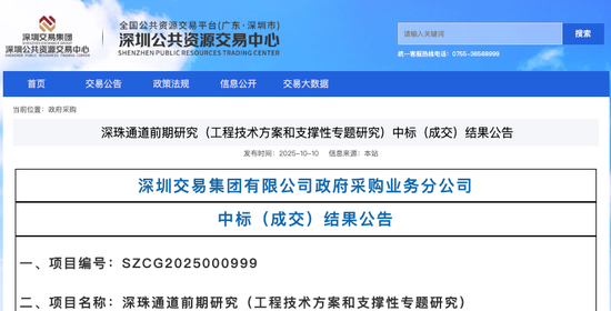 深珠通道前期研究中标结果出炉