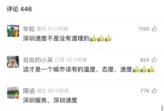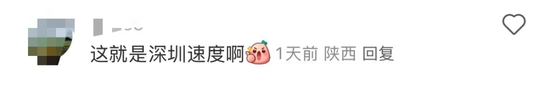 在这两个深圳网友的帖子下,不少网友再次感叹“深圳速度”,“深圳这方面真的让人佩服”。
