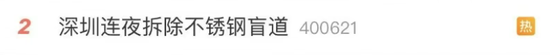 随后话题#深圳连夜拆除不锈钢盲道#冲上了微博热搜。