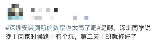 随后,一条“深圳安装厕所的效率也太高了吧”的词条登上同城热搜。