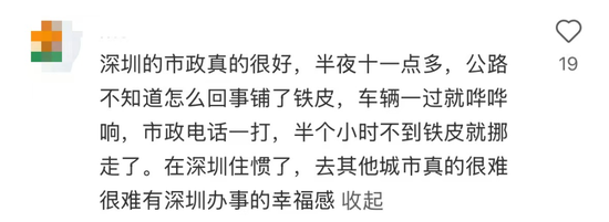 网友们在评论区留下的点赞、夸奖,乃至呼吁其他城市“抄作业”的声音,本质上是对高效、负责的政务服务的强烈期待。深圳的实践证明城市治理需要的就是这种“看见就办、办了就好”的诚意。