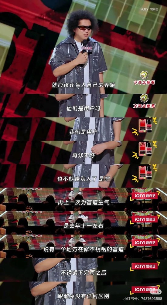 此前,一位视障脱口秀演员在节目里吐槽的“瞎滑”——他在节目中指出不锈钢盲道表面过于光滑,不仅不能为盲人提供有效的指引,反而可能因摩擦力不足导致摔倒等安全隐患盲人走在上面靠“瞎滑”,这让不锈钢盲道的问题进入了公众视野。