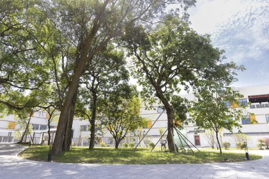 溪涌车辆基地以“公园社区”“融古汇今”为设计主题,通过垂直分层的复合式布局,将交通设施、商业配套与居住功能有机叠加,构建集约高效的“空中城市”,打造宜居宜业的“空中花园社区”。基地在景观设计中充分保留区域原生古树,建设具有地域特色的古树公园,并融入溪涌旧村的文化元素,使古树、古村与现代轨道交通相互交织,生动呈现区域百年演变的历史脉络。